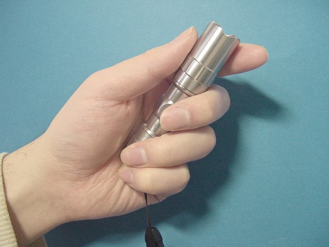 手にした所です。ちょっと小さめ。戦闘中にやたらと落とす人が多いのでストラップもついてます。