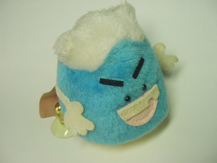 ぬいぐるみというかマスコットというか。直径 7cm程度で鈴と吸盤がついてます。背中には赤いマントと「ふ」の文字。