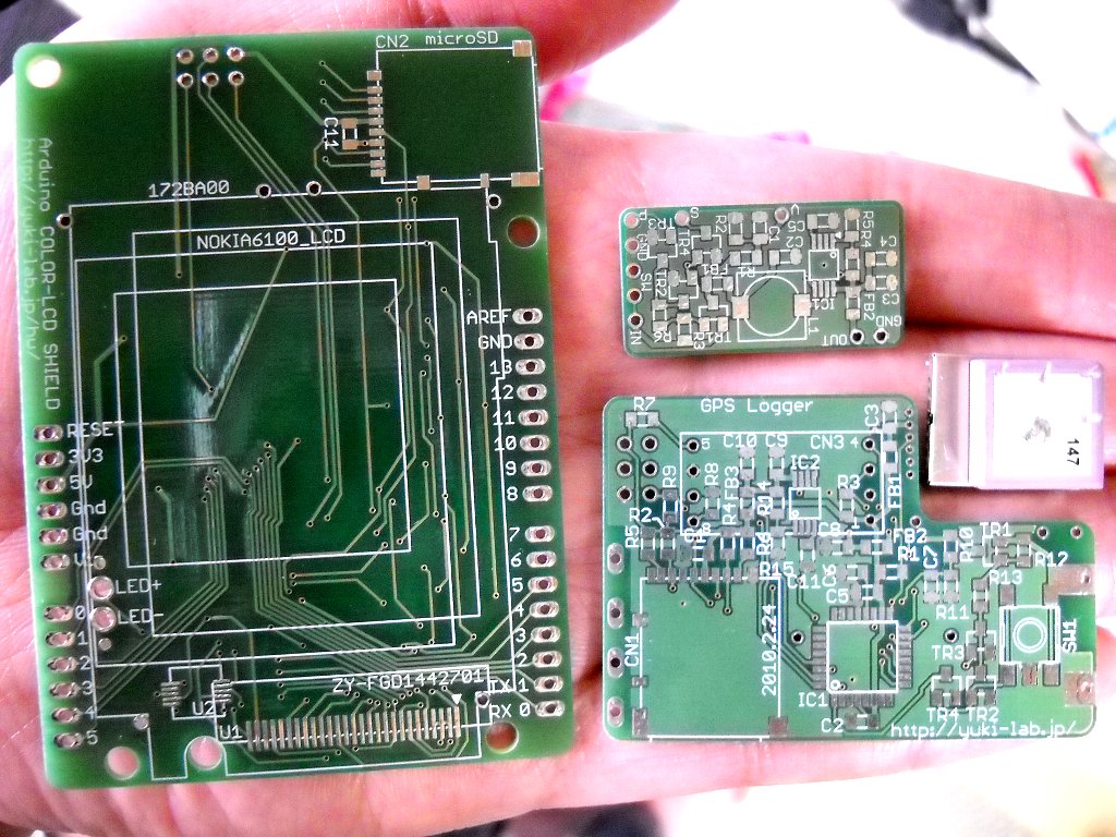 一日限りの P板.comの8千円コースの基板ができてキター。GPS Logger用の GPSモジュール GM-316も入手済みっす。