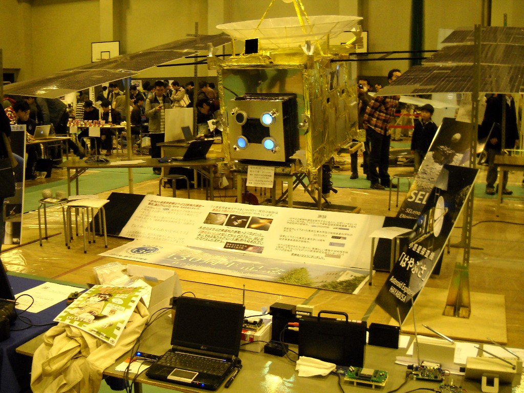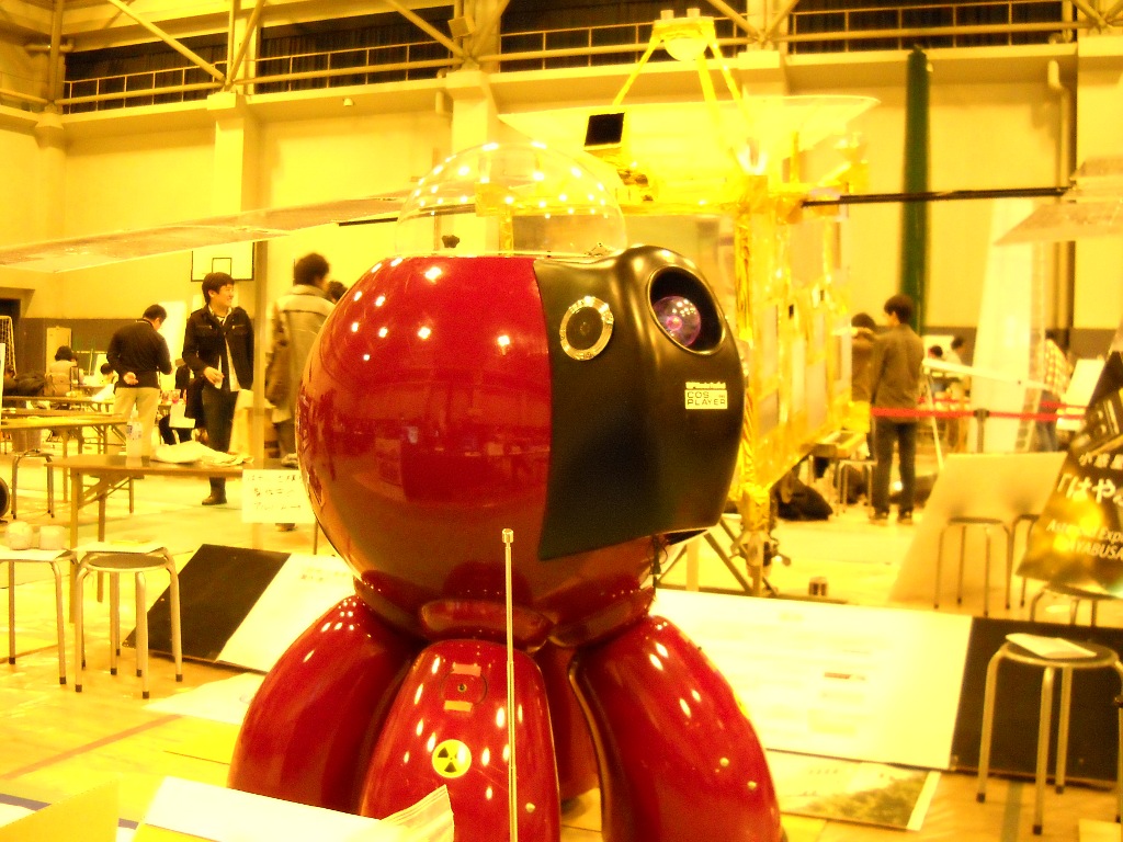 目の前ははやぶさの模型です。その奥は鳥人間コンテストで有名な東工大 Meister(マイスター)。