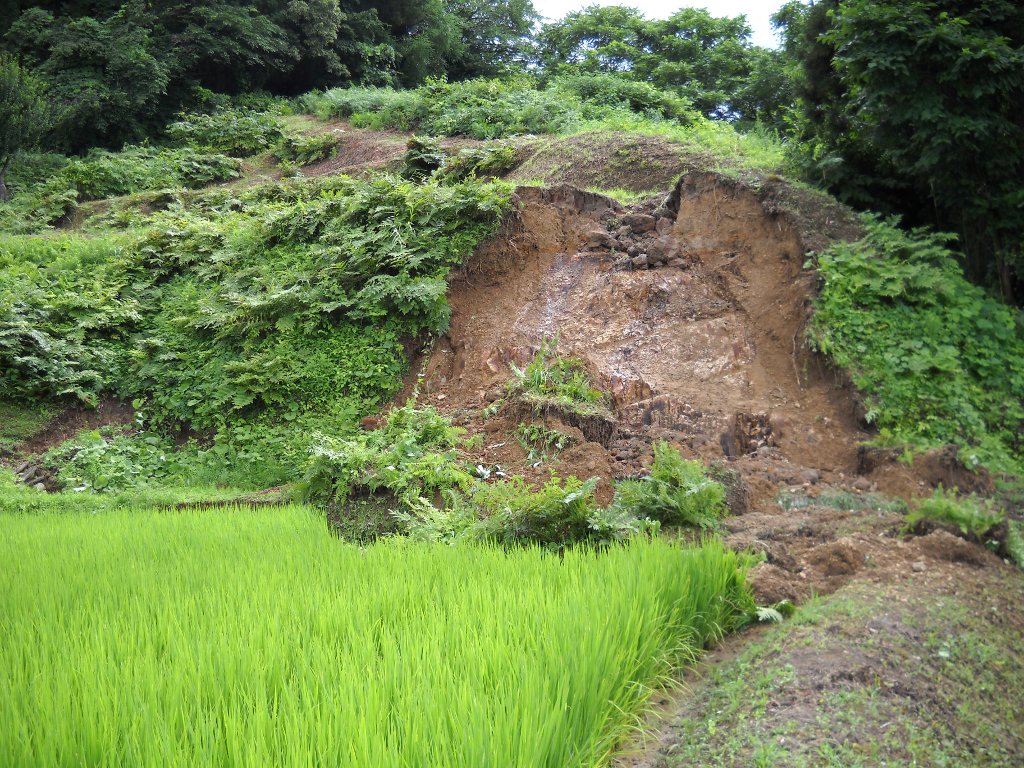 実家に電話したら「裏山がのげた(地滑りで崩れた)」らしい。