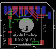 ちなみに SDカードにある左右の切り欠きがこの基板にはありませんが、このままで問題なく動作します。ライトプロテクトもかかったりしません。基板は 1.2mm厚の物を使っています。SDカードの規格としては 1.4mmが望ましいのですが、普通そんな厚みの基板は無いので。あ、はみ出し部分の角にRをつけておくべきだったな。