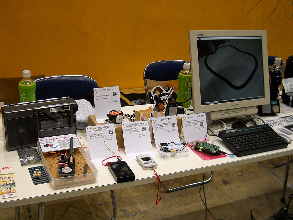 わたしの展示物のあたりの所をもちっと拡大。ただし、DSPラジオはわたしじゃなくて友人のです。