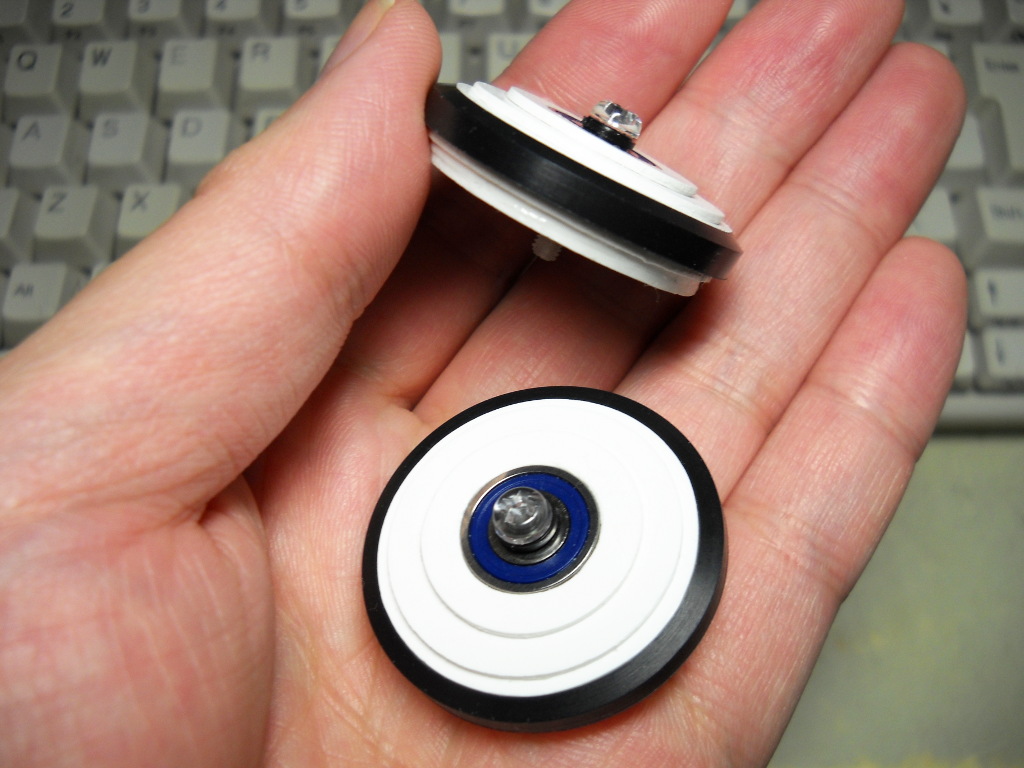 そんなわけで早速届いたベアリングを使ったホイールの製作。タイヤゴム部分は配管用のパッキンなんだけど、なんかいい感じ。今回はうまくいきそうだ。