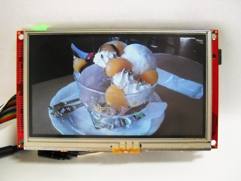 そんなわけで 32bitのプログラム。ようやく OLIMEX MOD-LCD4.3に自前のコードで JPEG画像が出せるようになった。自前っても、ねむいさんのコードサンプルを移植して ChaNさんの FatFsと TJpgDec使ってるだけだけど。まあ、うちらの仕事なんていつもそんなもんだ。巨人の肩の上。