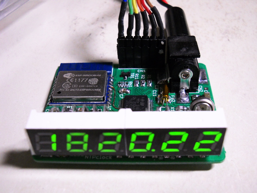 NTP時計を青色電波時計の代わりに置いてみる。うーん、やはり 7SEGが小さくなって遠くからわかりにくいなあ。後でもう一枚基板作って 7SEGだけ大きいのにしたのを作るかなあ。