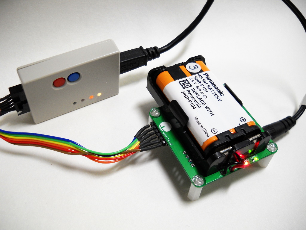 Ni-MH電池モジュール HHR-P104の充電器の新基板テスト中。入力側にも電流・電圧センサーつけたのでスイッチング効率をリアルタイムで計測できる。概ね 85%以上だから目標値クリアというところ。あと、安全の為に電池BOX直下に温度センサーをつけてある。とは言ってもこの電池モジュールは背面にプラスチックケースがあるので電池本体の温度を測るというわけにはいかない。気休めかも。