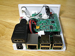 そんなわけでかなり難航したけど Raspberry Pi用ケースができた。このサイズで RasPiの側面のコネクタを後ろに出す為に内部でかなり無理してる。特に HDMI。これは今後基板を作ってスマートに処理するつもり。