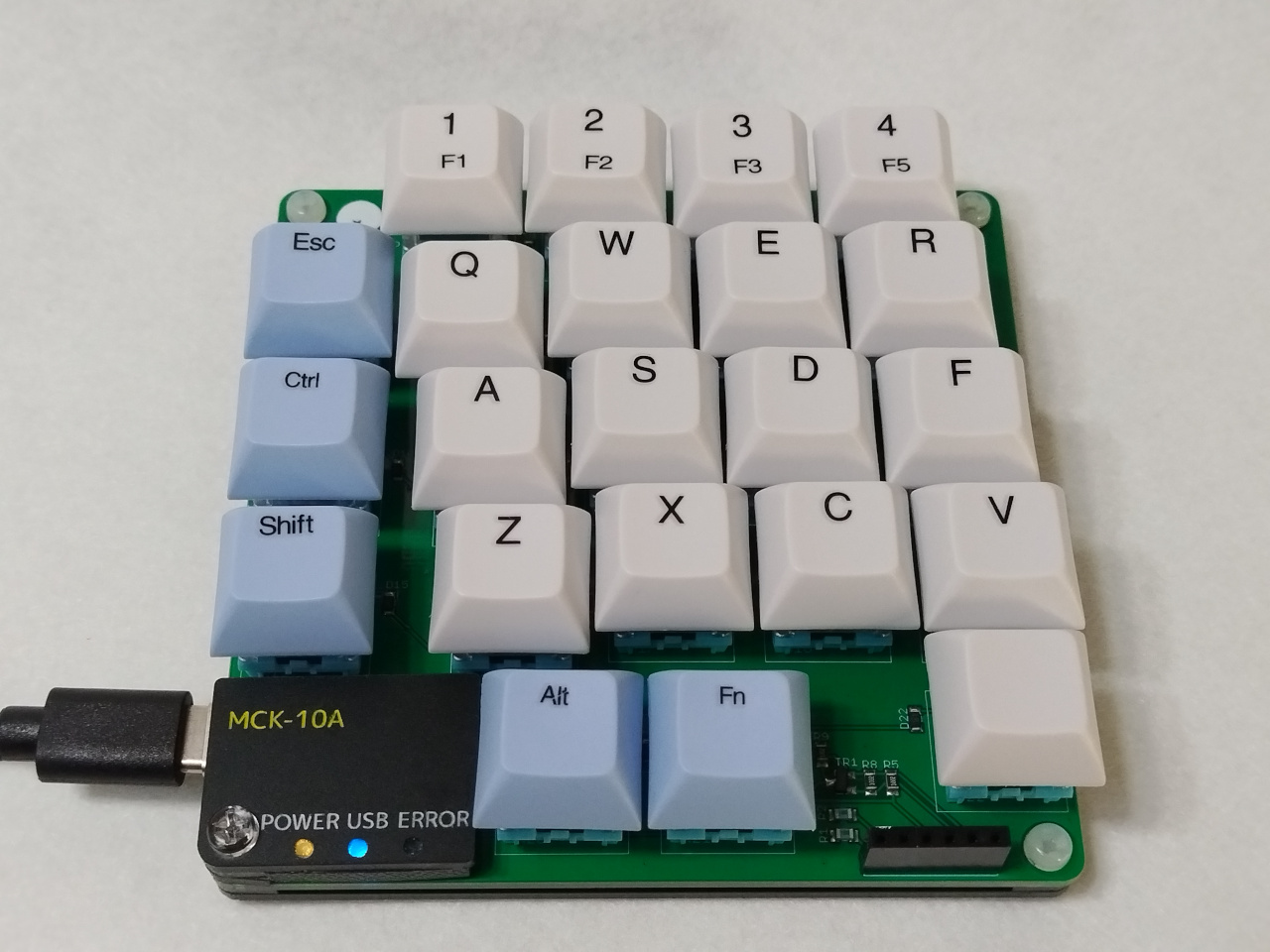 今回作ったキーボードは [Fn]+[4]で [F4]ではなく [F5]が入力されるようになっている。これはマイクラでは [F4]は使っていないが [F5]を使う為。なお、わたしの場合はキー割り当てを変更してあり、前後左右はホームポジションで操作できるようになっている。